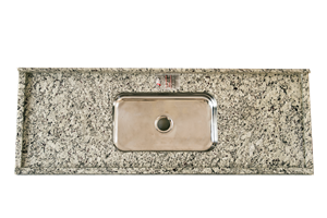 Pia Moldurada em granito Arabesco 1,50 x 0,55 com cuba em inox. Venda em unidade.
