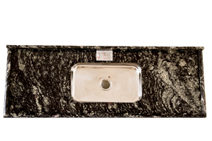 Pia Moldurada em granito Preto Indiano 1,50 x 0,55 com cuba em inox. Venda em unidade.